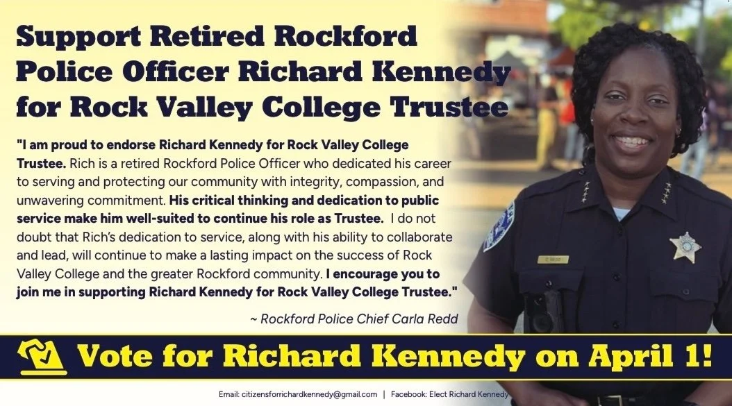 Endorsed by Rockford Chief of Police Carla Redd, pictured below